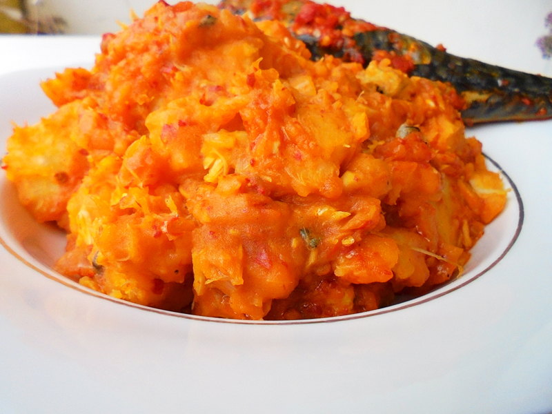 with choice ofSmoked fish fillets, prawns, traditional spices in a savoury thick palm cream sauce.